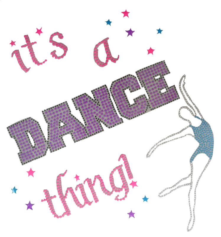 S100804 - It's A Dance Thing - Size: 11" x 11.8" - Colors: Clear & Jet Black Stones, Flu. Fuchsia, Flu. Purple, Flu. Blue Nailheads
