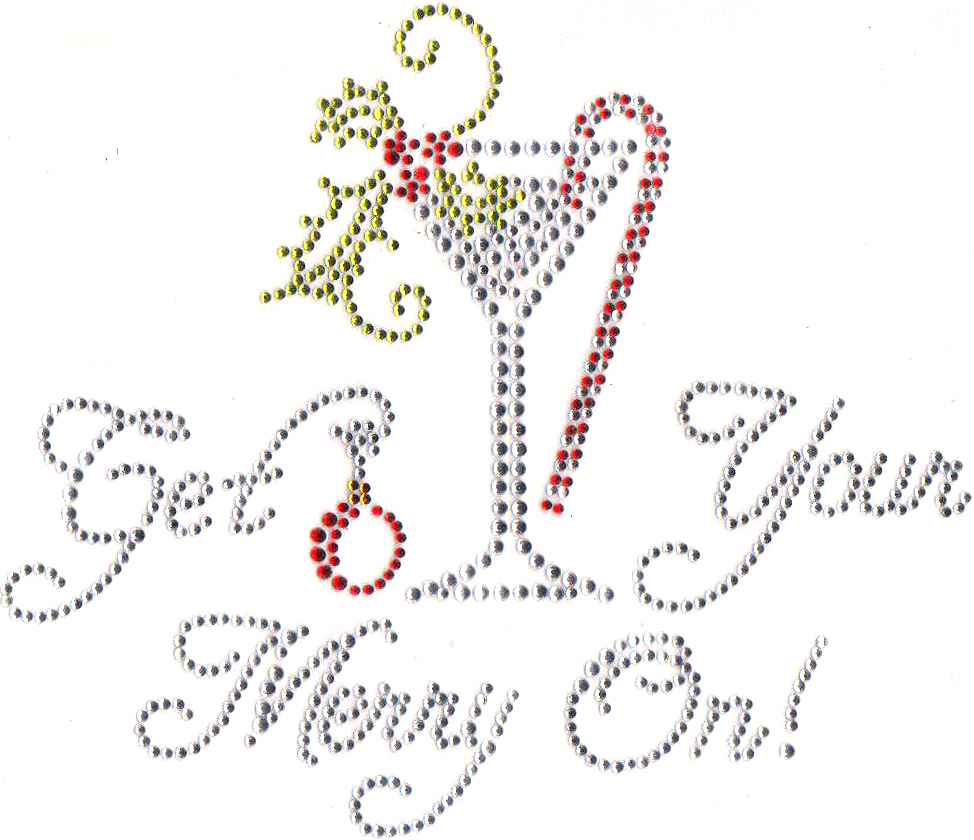 "Get Your Merry On!" with decorated Martini glass design.