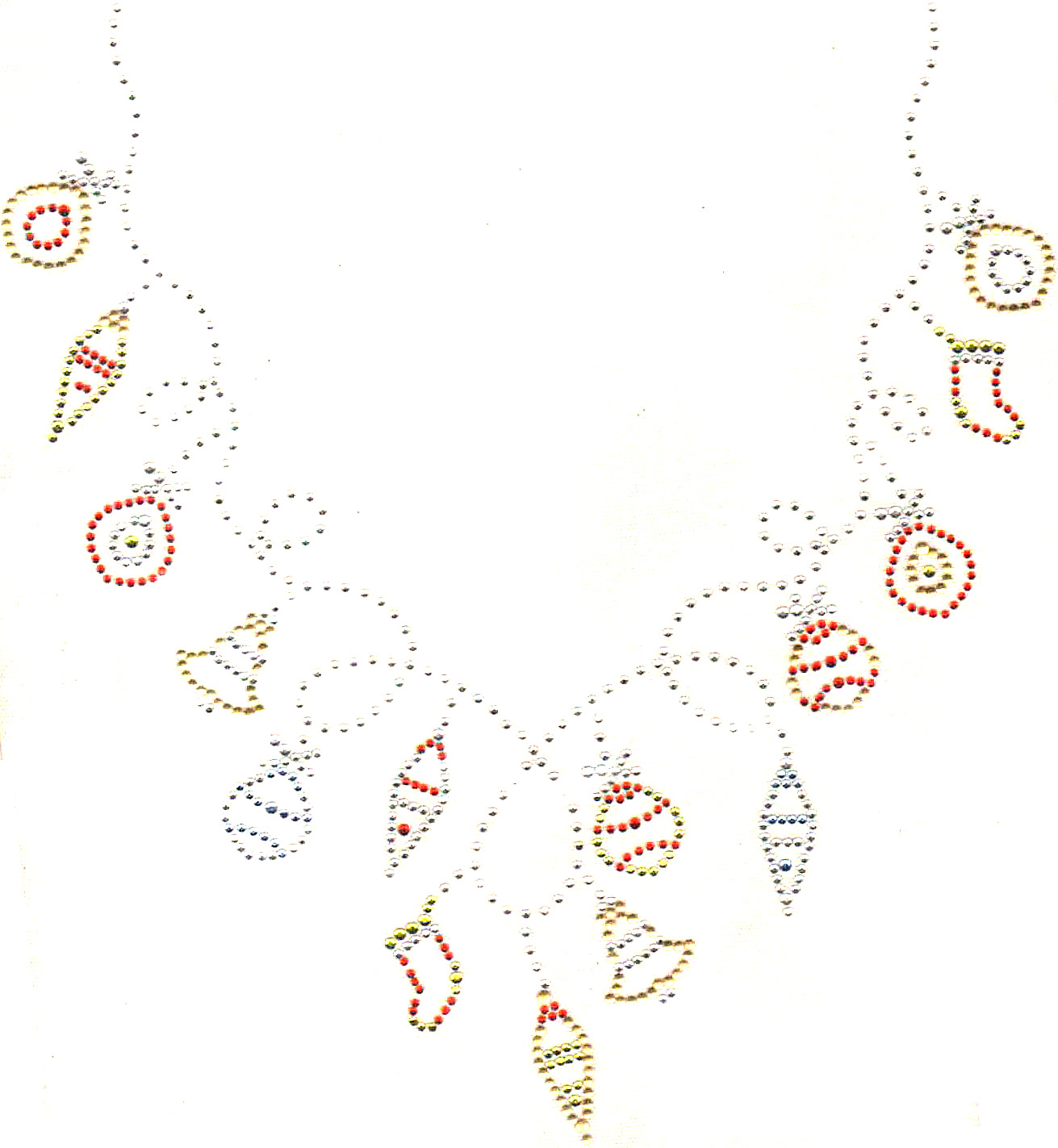 Material used:Lt. Sapphire, Peridot, Siam & Clear Stones, and Matt Gold nailheads.