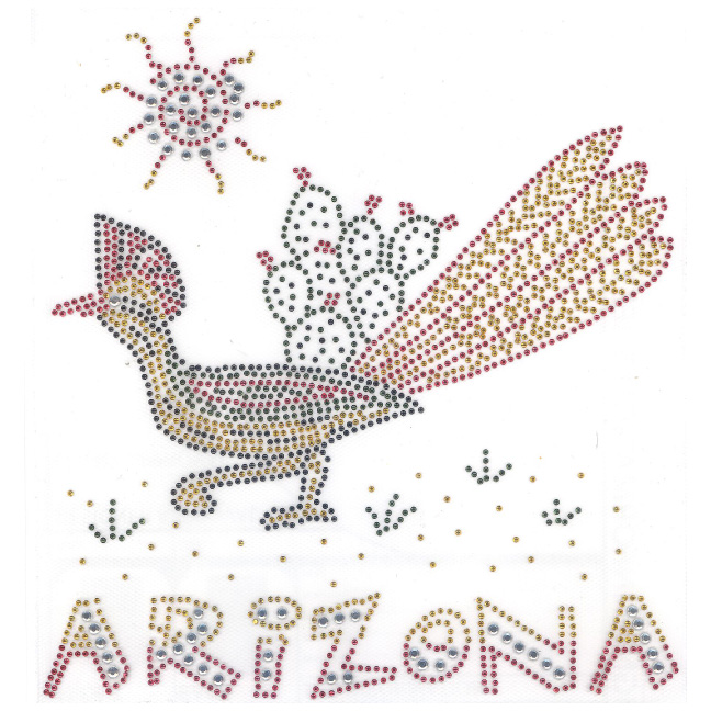 ROADRUNNER WITH NAME DROP UNDER - WE CAN DO ANY CITY/STATE JUST REQUEST IT - SIZE: 8" X 8.7" - COLORS: RED, GOLD, BLACK, GREEN STUDS AND CLEAR STONES