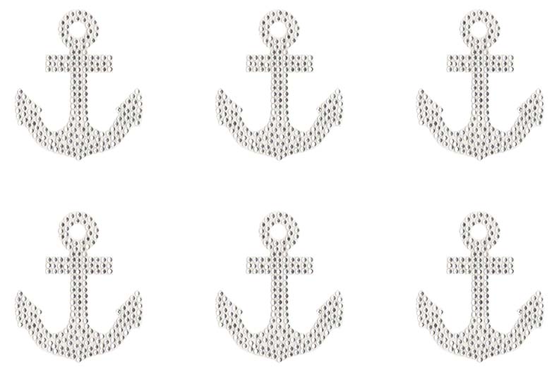 S9109CLR - SMALL CLEAR ANCHOR, SOLD 6 PER PAGE - SINGLE SIZE: 2.75" X 3.22" - COLOR: CLEAR STONES