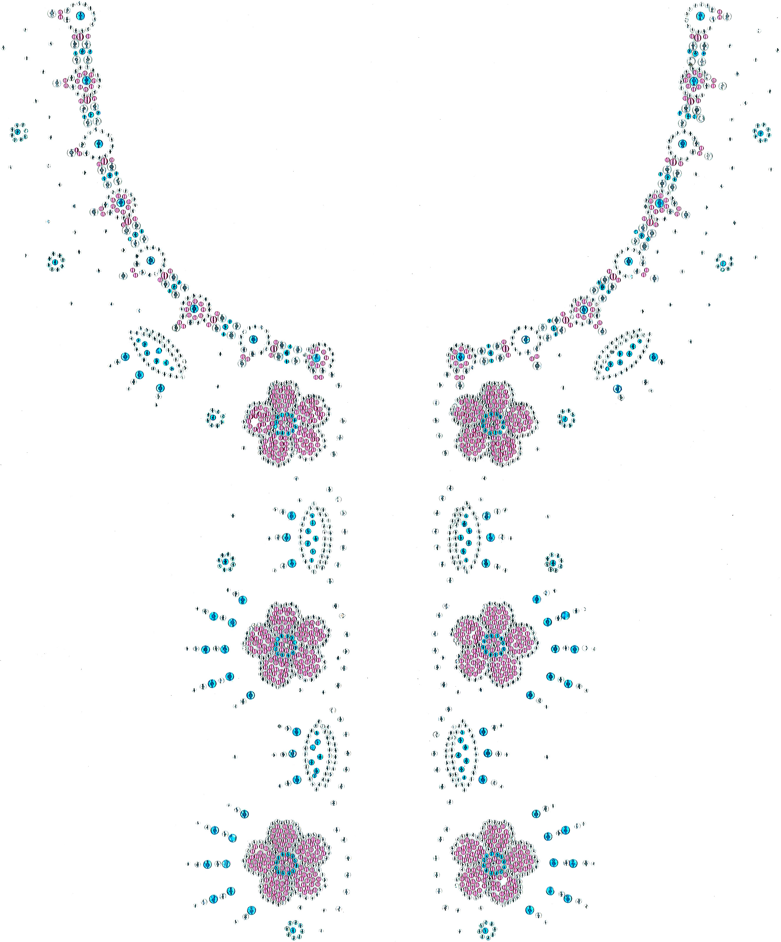 Aqua & Pink Circles & Flower Jacket/Cardigan Neckline design.